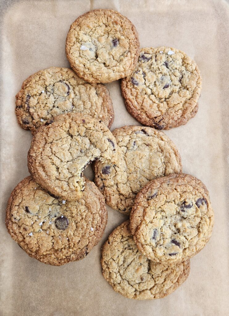 En knaprig kaka med seg mitten, fylld med svensk havre, mjölkchoklad & mörk choklad.